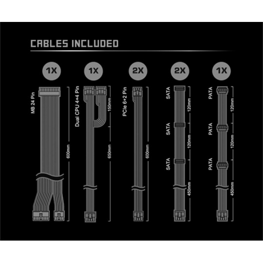 | ATX 20+4pin konektor | 1x / 1x (600 mm) |