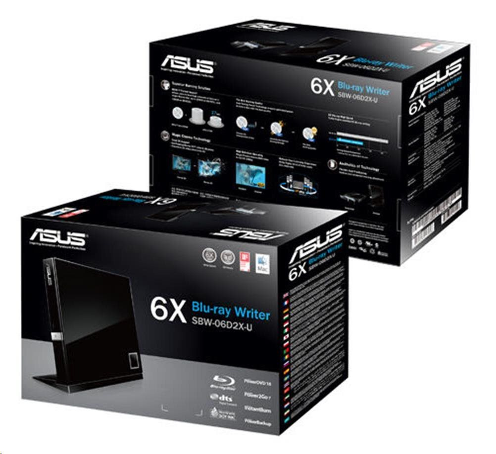 ASUS SBW-06D2X-U - prenosná 6X prenosná napaľovačka Blu-ray slim s podporou M-DISC na doživotné zálohovanie dát a kompatibilitou so systémami Windows a Mac OS