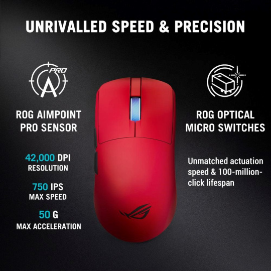 ASUS Herní myš ROG Harpe II Ace, Bezdrátová, červená