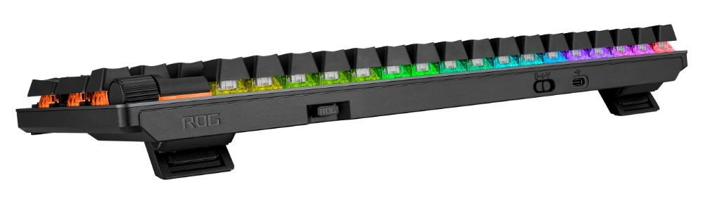 - Unikátna medzerník s motívom ROG: UV potiahnutý medzerník so špeciálnym označením ROG a tromi RGB LED žiarovkami na spodnej strane