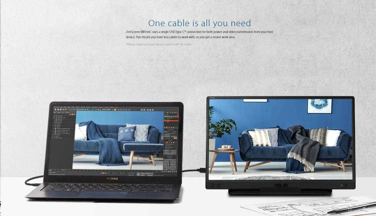 ASUS ZenScreen MB166C Prenosný USB monitor - 15,6 palca, Full HD, IPS, USB Type-C, Flicker Free, Filter modrého svetla, Anti-glare povrch
