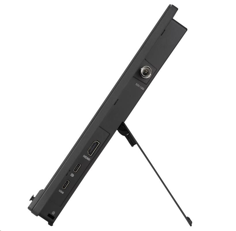 Bohaté možnosti pripojenia zahŕňajú port 12G-SDI, USB-C (režim DP Alt) podporujúci riešenie s jedným káblom a HDMI (v2.0) pre kompatibilitu so súčasnými aj budúcimi displejmi a periférnymi zariadeniami. Disponuje tiež rozbočovačom USB 3.2 Gen 1 Type-C.