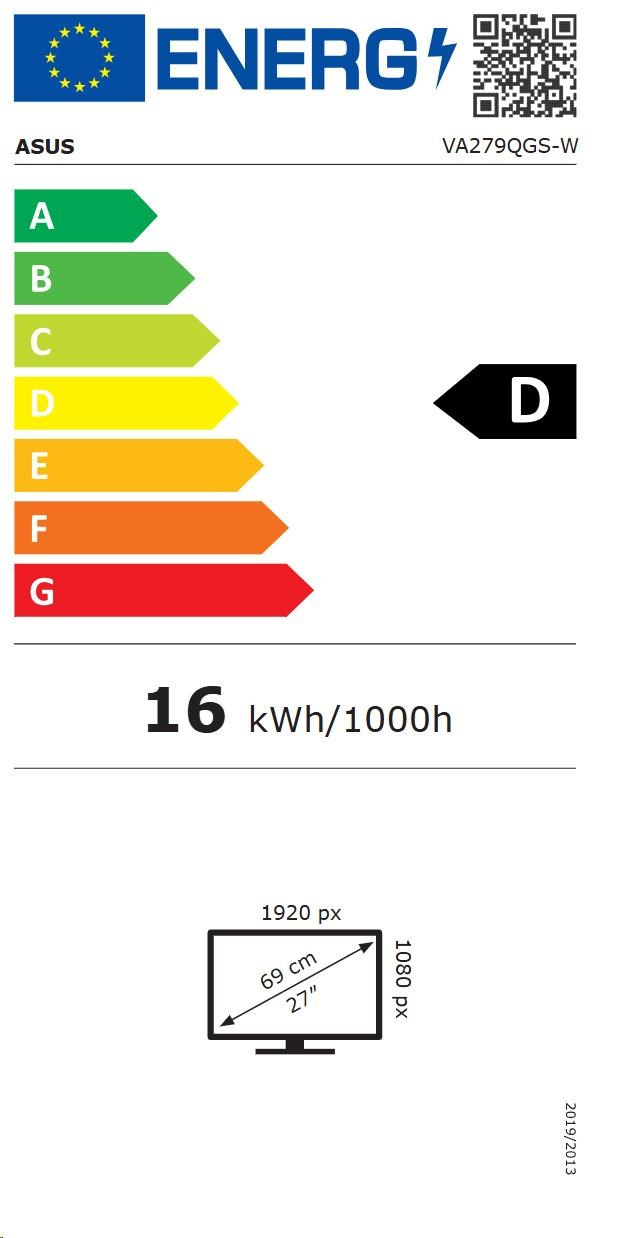 ASUS LCD 27" VA279QGS-W, FHD, 350nits, 120Hz, 1ms, Height adj., Audio, Repro, Vesa, HDMI, DP, VGA, USB, White
