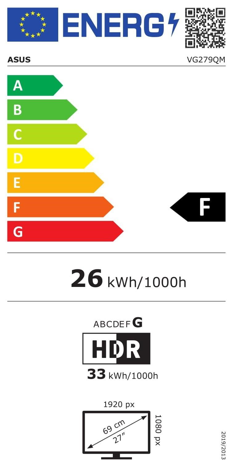ASUS LCD 27" VG279QM 1920x1080 TUF Gaming HDR Fast IPS 280Hz 1ms (GTG) Extreme Low Motion Blur Sync G-SYNC REPRO PIVOT