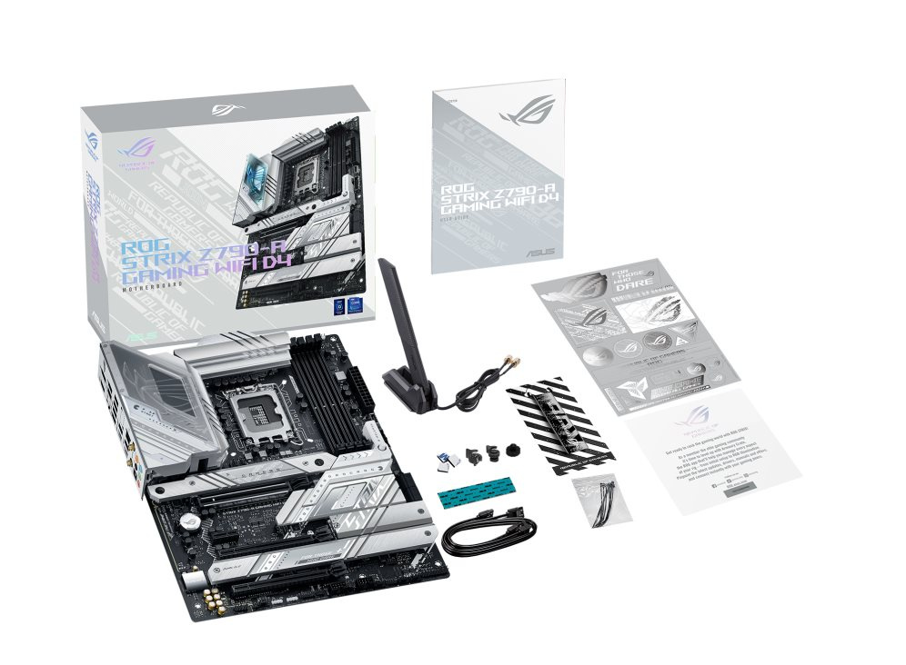 Intel® Z790 LGA 1700 ATX motherboard with 16 + 1 power stages, DDR4 memory support, four M.2 slots, PCIe® 5.0 x16 SafeSlot with Q-Release, WiFi 6E, USB 3.2 Gen 2x2 Type-C® rear I/O port and additional front-panel connector with PD 3.0 up to 30W, AI Overclocking, AI Cooling II, and Aura Sync RGB lighting