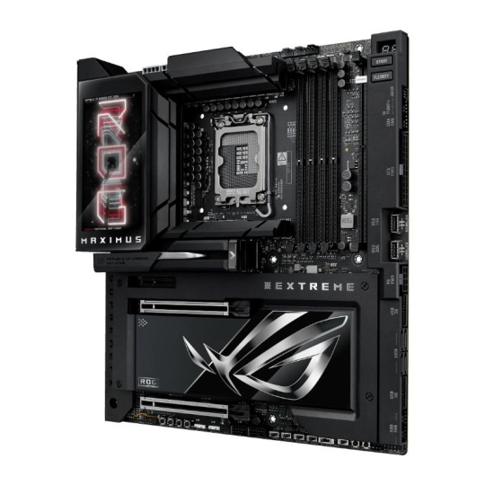 ROG Maximus Z890 Extreme je maximálnym vyjadrením najmodernejšej technológie základnej dosky a výkonu. Odhaľte horné limity procesorov Intel® Core™ Ultra Series 2, DDR5 modulov, grafických kariet PCIe® 5.0, NVMe úložiska, USB konektivity, Thunderbolt™ funkcionality a ďalšie – všetko zabalené do elegantného balenia s 5-palcovým farebným LCD displejom, ktorý môže zobrazovať živé obrázky alebo aktuálne systémové štatistiky podľa vášho vkusu.