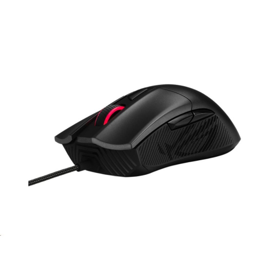 - Klasická ergonómia ROG Gladius s diskrétnymi ľavými a pravými tlačidlami, ľahkou konštrukciou a odolnými protišmykovými bočnými úchytmi s vyleptaným ikonickým totemom ROG