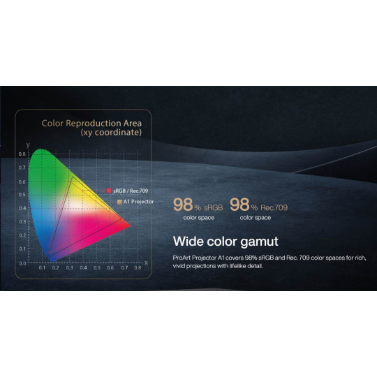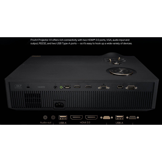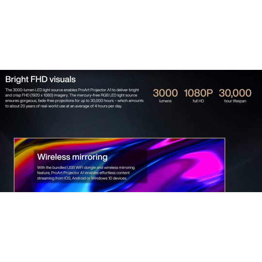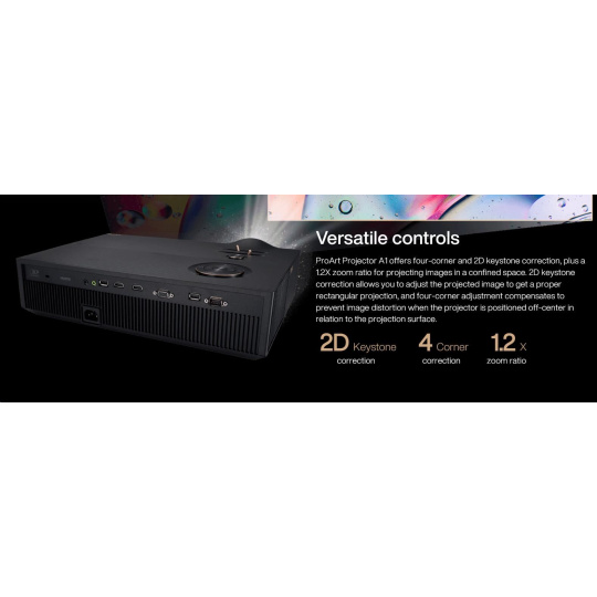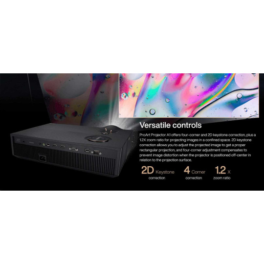 ASUS ProArt A1 LED profesionálny projektor - Prvý na svete Calman Verified projektor,? E < 2, 98% sRGB a Rec. 709, FHD (1920 x 1080), 3000 lúmenov, korekcia štyroch rohov a 2D keystone, zväčšenie pomeru 1,2X, bezdrôtové zrkadlenie