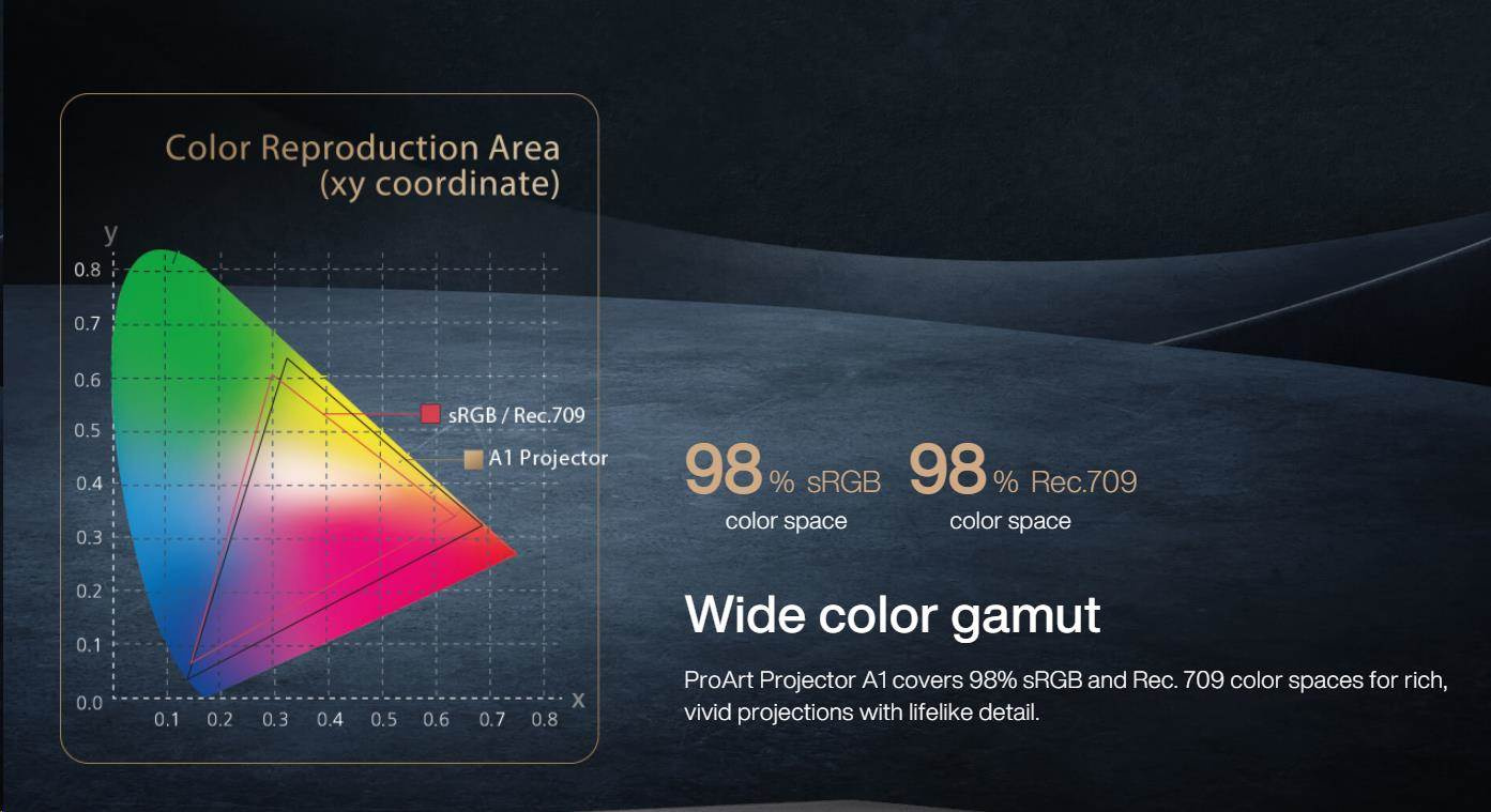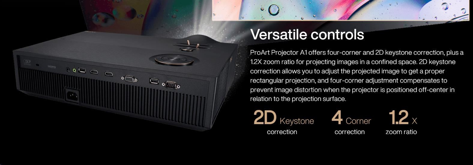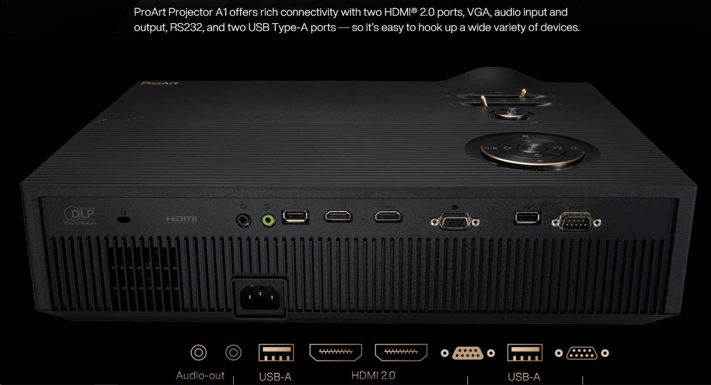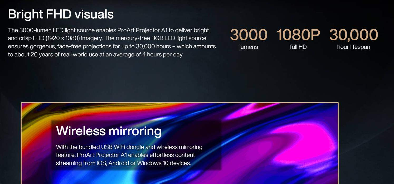 ASUS ProArt A1 LED profesionálny projektor - Prvý na svete Calman Verified projektor,? E < 2, 98% sRGB a Rec. 709, FHD (1920 x 1080), 3000 lúmenov, korekcia štyroch rohov a 2D keystone, zväčšenie pomeru 1,2X, bezdrôtové zrkadlenie