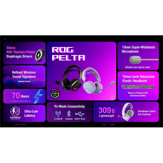 .ASUS sluchátka ROG Pelta, Bezdrátové BT a RF 2.4GHz, ARGB, bílá