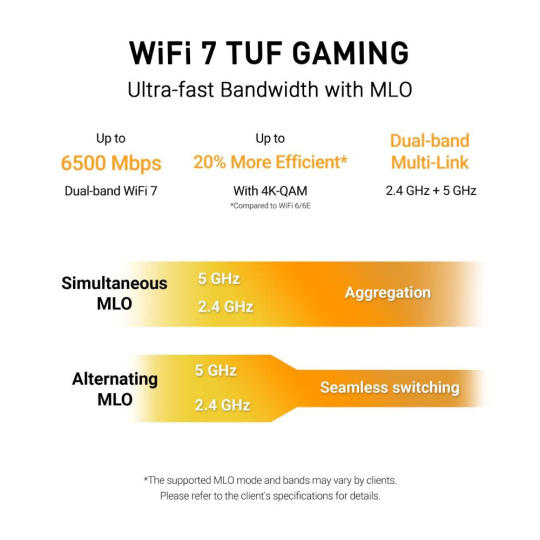 .ASUS TUF-BE6500 (BE6500) WiFi 7 Extendable Gaming Router, 4x 2.5G, AiMesh
