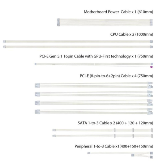 | PCIe 12+4pin Konektor | 1x / 1x (750mm) |