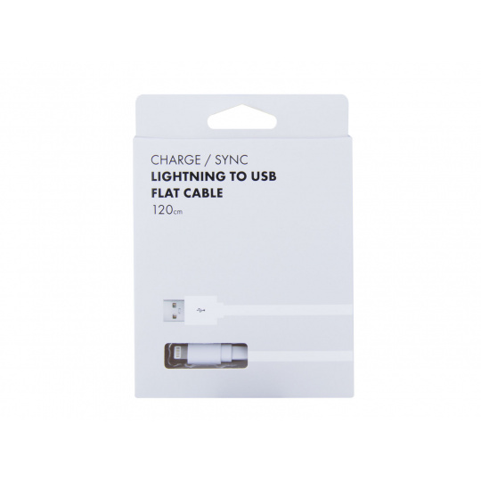 dátový a nabíjací kábel s konektorom Lightning. Umožňuje prenášať údaje medzi Macom/PC a iPhonom, iPadom alebo iPodom. Dĺžka kábla je 120 cm. Plochý profil kábla zabraňuje zamotávaniu.