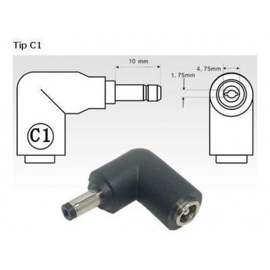 Konektor, ktorý možno použiť na redukciu konektora C.4 univerzálne napájacie adaptéry na konektor C1 (4,8 mm x 1,7 mm) vhodné pre notebooky Asus, HP, LG, Sony