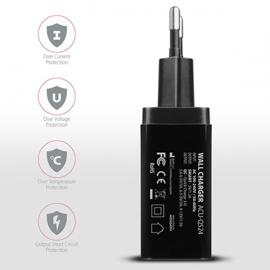 Dva nezávislé výstupy USB Quick Charge 3.0 a SMART 5V/1.2A umožňuje rýchle nabíjanie väčšiny mobilných zariadení. Je kompatibilný so zariadeniami Apple iPhone, iPad, Samsung, Huawei, Honor, HTC, Xiaomi, LG, Motorola a ďalšími štandardmi rýchleho nabíjania.