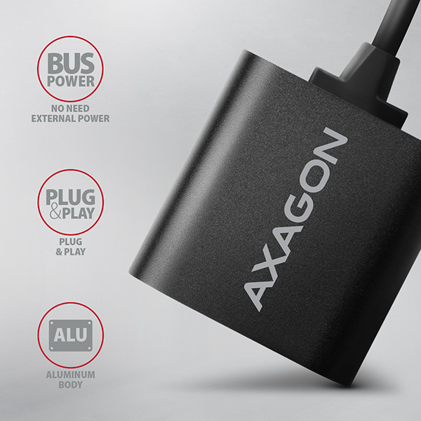 AXAGON ADA-12, USB 2.0 - externá zvuková karta, 48 kHz/16-bit stereo, kovová, kábel USB-A 15 cm