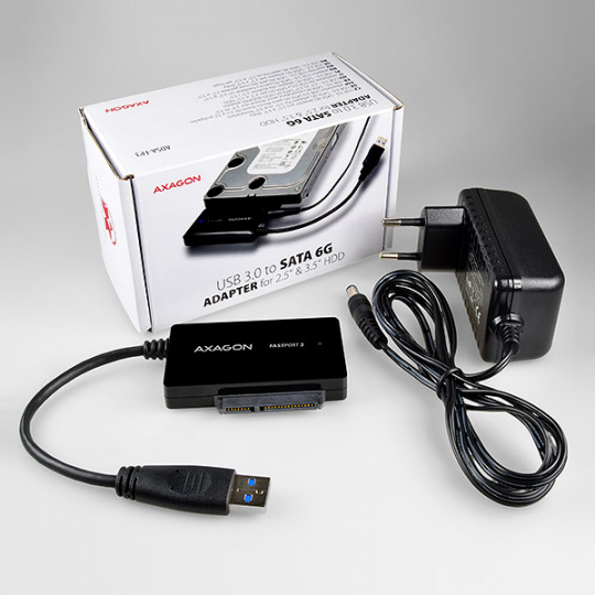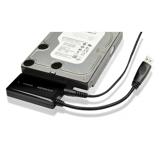 Univerzálný all-in-one adaptér AXAGON ADSA-FP3 FASTport3 s USB 3.0 a SATA 6G rozhraním určený pre jednoduché pripojenie ľubovoľného SATA disku alebo mechaniky.
