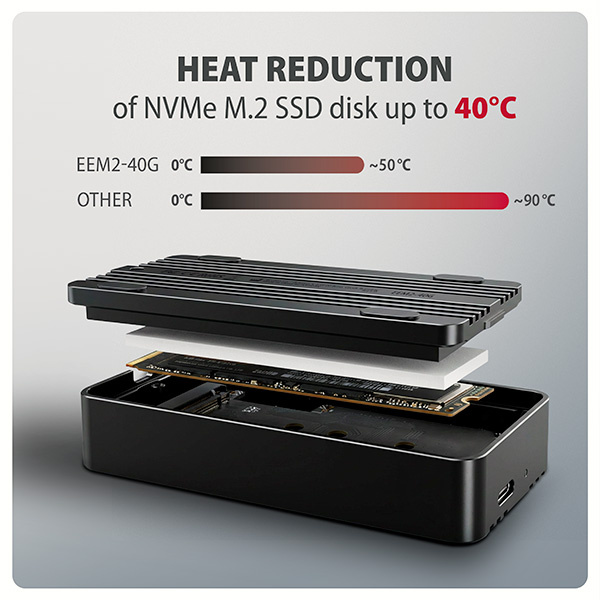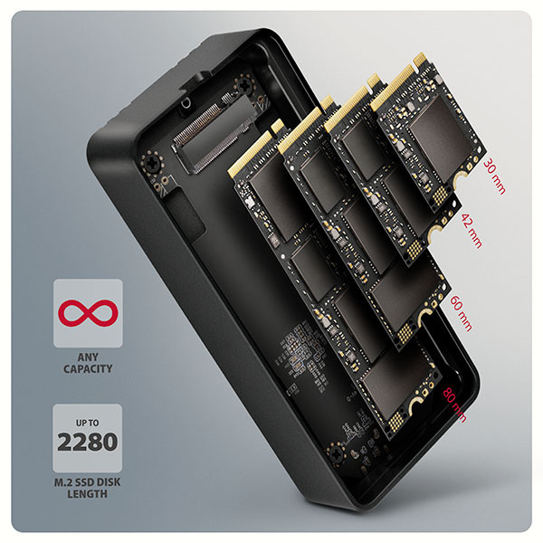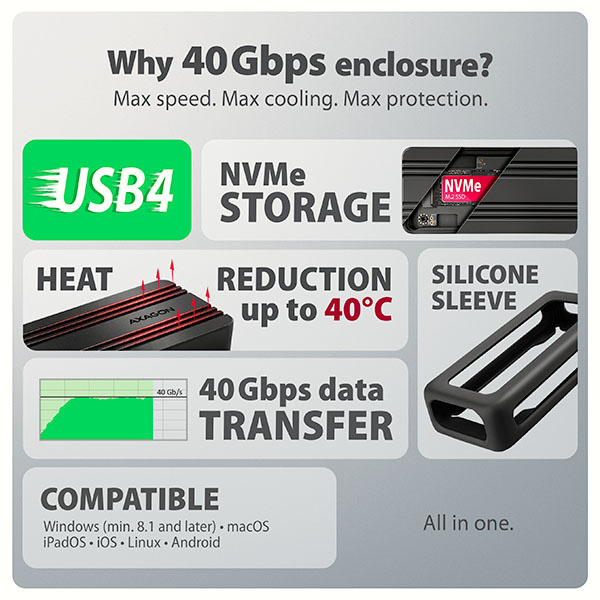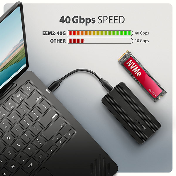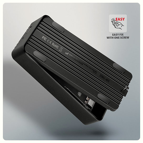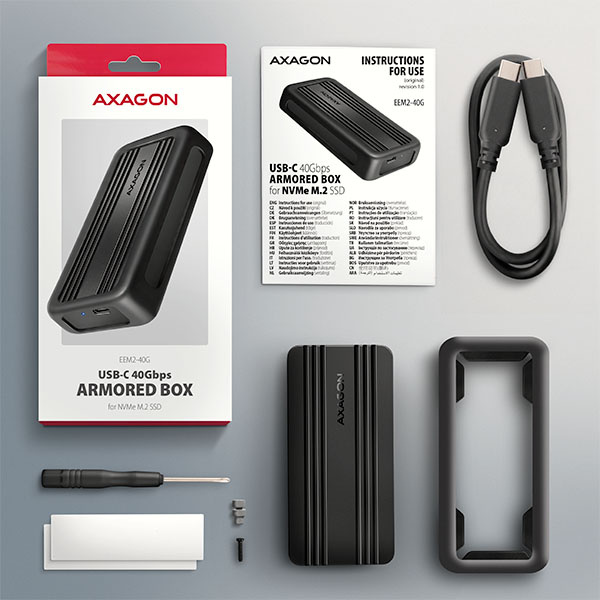 AXAGON EEM2-40G, USB-C 40Gbps externý box pre M.2 NVMe SSD, zosilnený hliník