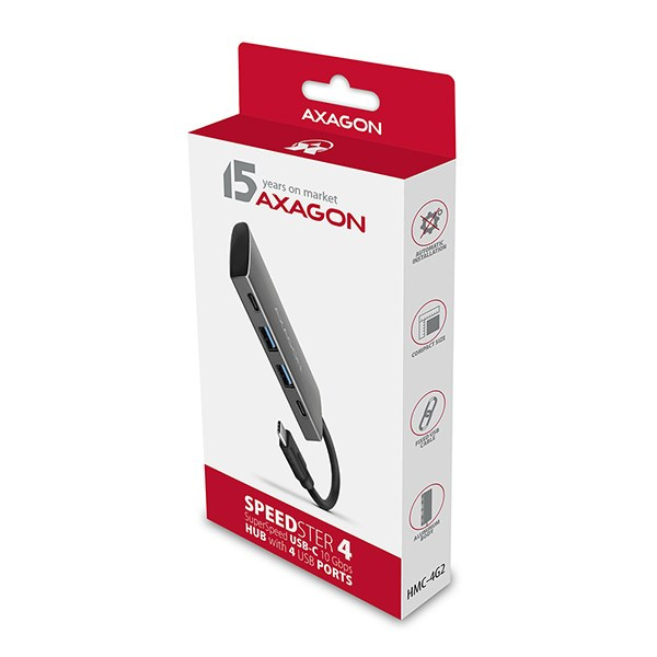 Vysokorýchlostný USB-C 3.rozbočovač AXAGON HMC-4G2 SPEEDSTER 4 Gen 2 rozšíri váš notebook, počítač alebo telefón o štyri porty. Ľahko a rýchlo pripojte k počítaču až štyri zariadenia USB súčasne prostredníctvom obojstranného konektora USB-C.