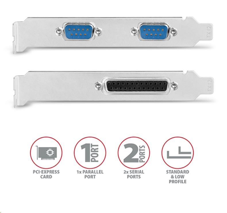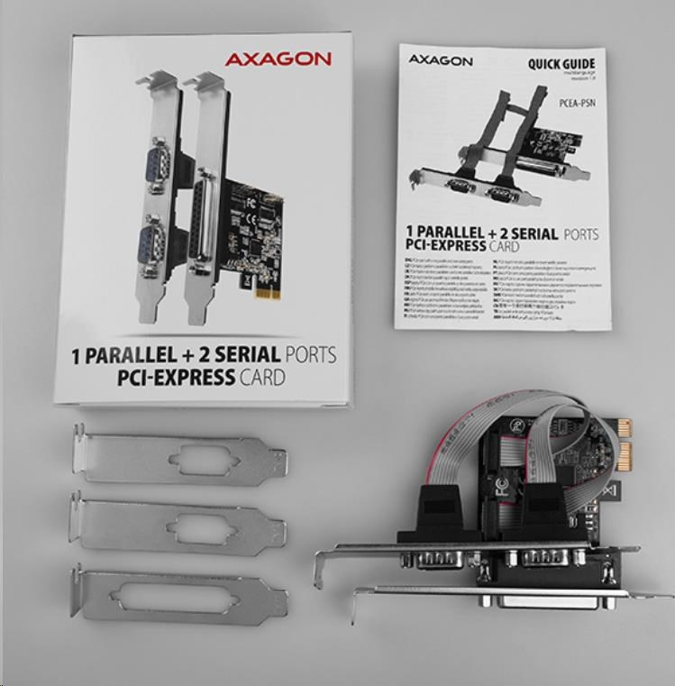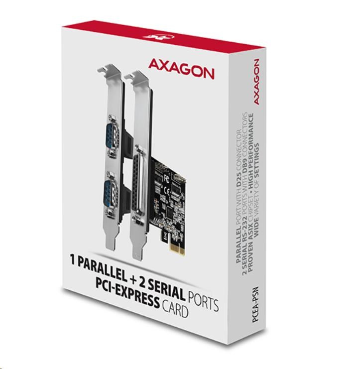 AXAGON PCEA-PSN, PCIe radič - 1x paralelný (LPT) + 2x sériový port (RS232) 250 kbps, vrátane. LP