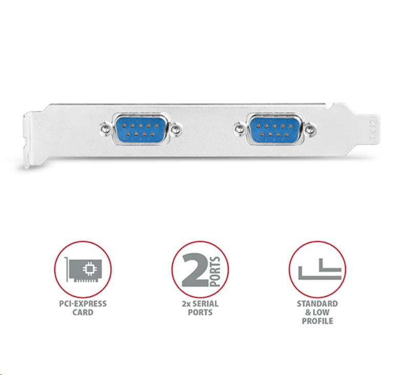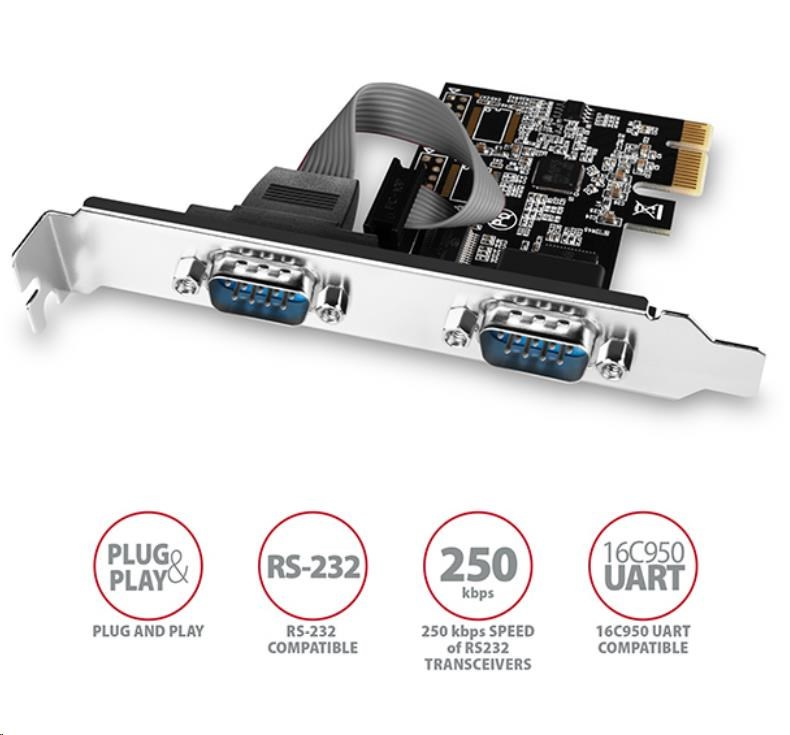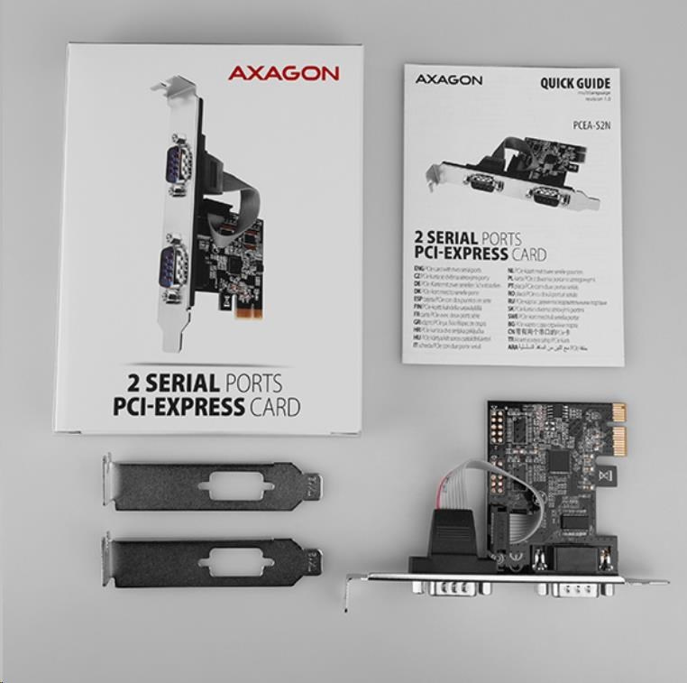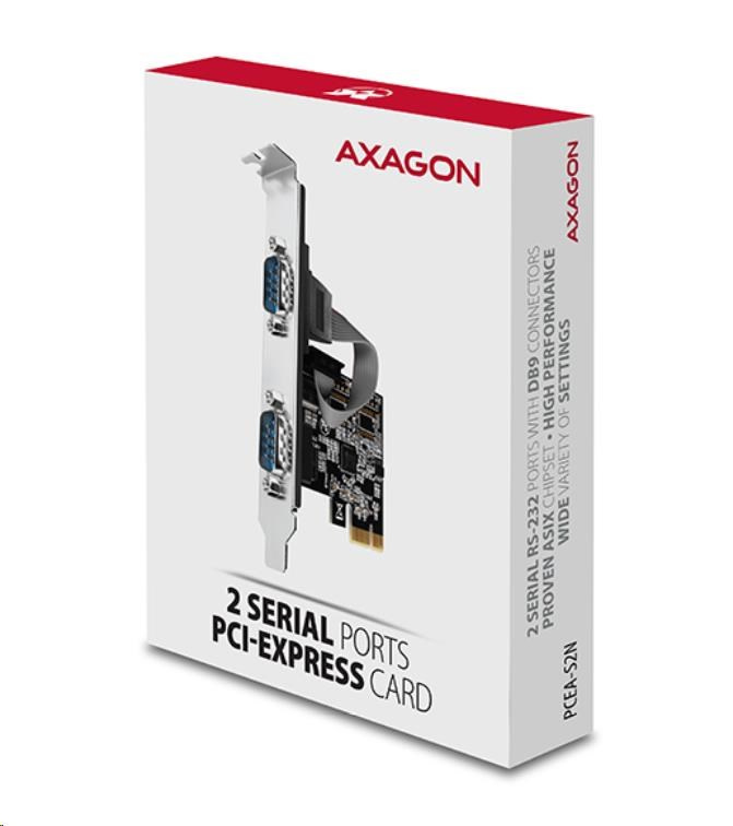 AXAGON PCEA-S2N, PCIe radič - 2x sériový port (RS232) 250 kbps, vrátane. LP