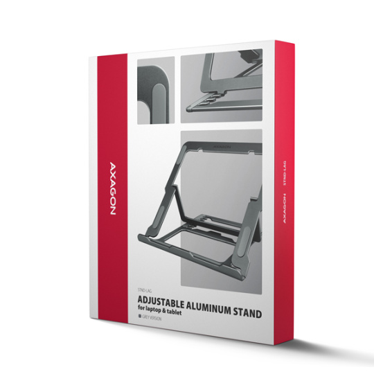 AXAGON STND-LAG, hliníkový stojan pre notebooky 10"-17.3", nastaviteľná výška, sivý