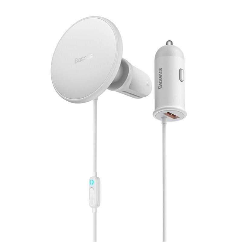 SUCX040002 - Baseus CW01 magnetický držák do auta s bezdrátovým nabíjením (do ventilační mřížky) s USB-A nabíjecím adaptérem 15W+25W bílá