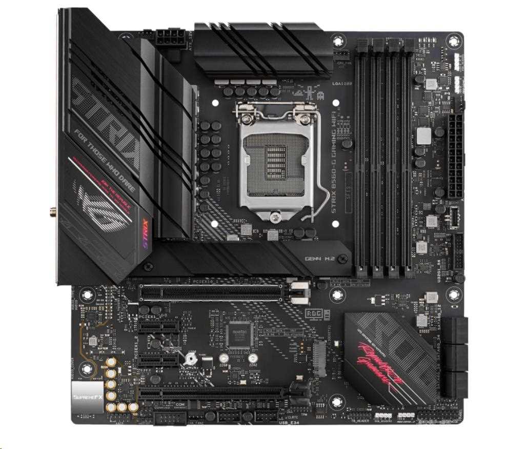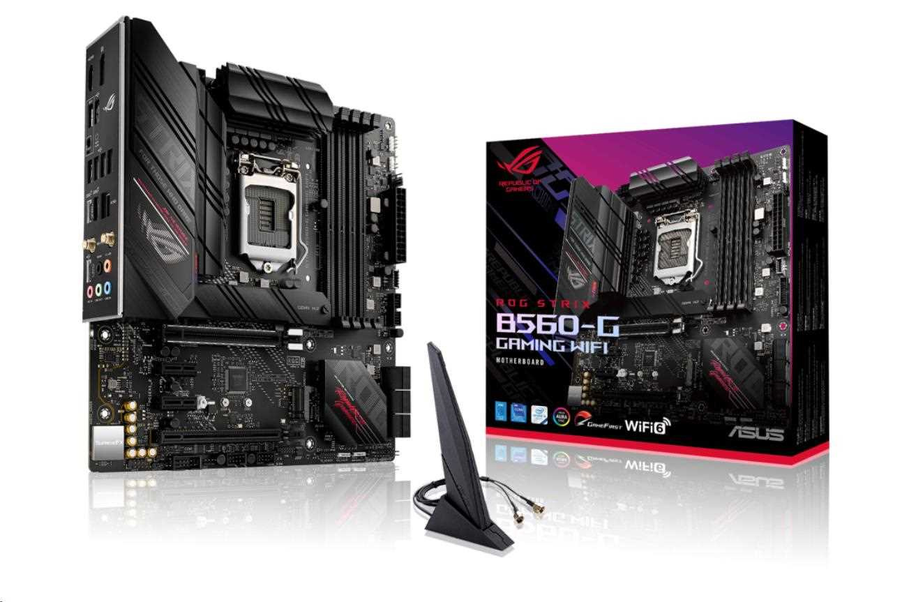 Intel® B560 LGA 1200 micro ATX motherboard with PCIe 4.0, 8+2 teamed power stages, Two-Way AI Noise Cancelation, WiFi 6 (802.11ax), Intel® 2.5 Gb Ethernet, Two M.2 slots with one slot featuring its own heatsink, USB 3.2 Gen 2x2 USB Type-C® , SATA and Aura Sync RGB lighting