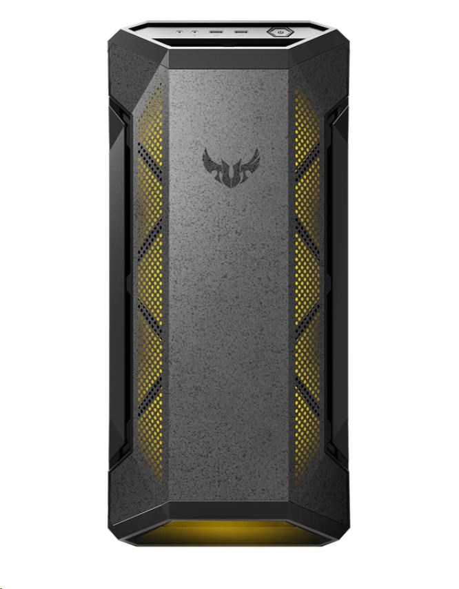 ASUS TUF Gaming GT501 case supports up to EATX with metal front panel, tempered-glass side panel, 120 mm RGB fan, 140 mm PWM fan, radiator space reserved, and USB 3.1 Gen 1