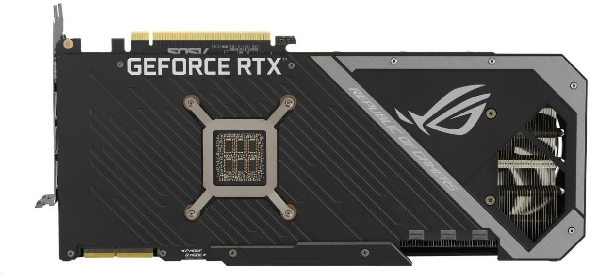 A new shroud with metal accents mirrors the design aesthetic of ROG Strix motherboards. The side is lit with an addressable RGB strip that can be customized with Armoury Crate to