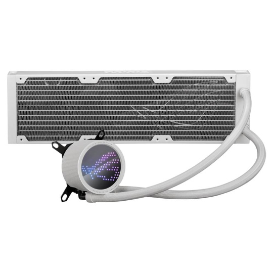 ROG Ryuo III 360 white edition all-in-one liquid CPU cooler with Asetek 8th gen pump solution, Anime Matrix™ LED Display and ROG ARGB cooling fans