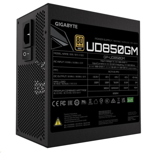 BAZAR - GIGABYTE zdroj UD850GM, 850W, 80+ Gold, 120mm fan - Po opravě (Bez příšlušenství)