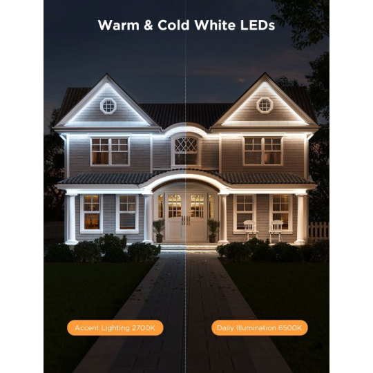 Vonkajšie inteligentné LED pásy Govee Outdoor Pro urobia z vašej záhrady dizajnový skvost. Vďaka technológii RGBICWW zobrazujú naraz až 57 farieb a celkovo môžu zobraziť až 16 miliónov farieb. Okrem toho je pás vybavený bielymi LED diódami, ktoré verne reprodukujú odtiene bielej od studenej cez neutrálnu až po teplú. Určite si budete môcť vybrať z viac ako 64 režimov osvetlenia. Pri organizovaní záhradnej párty potom prídu vhod režimy vizualizácie hudby. Alebo si nastavte vlastné farebné kombinácie pomocou režimu Urob si sám. Príkazy môžete zadávať aj hlasom prostredníctvom Siri, Alexy alebo Google Assistant, cez aplikáciu Govee Home, Google Home na smartfóne alebo tablete. Svetlo má celkovú dĺžku 10 metrov a jeho inštalácia je veľmi jednoduchá. Pomocou časovača môžete svetlo automaticky zapínať a vypínať podľa západu a východu slnka.