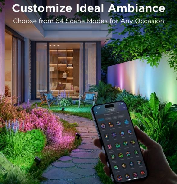 Energeticky úsporné záhradné reflektory so svetelným výkonom 750 lm urobia z vašej záhrady dizajnový skvost. Vďaka technológii RGBICWW dokážu zobraziť až 16 miliónov farieb a ponúkajú aj biele spektrum od 2700 do 6500 K. Na výber máte určite viac ako 50 režimov osvetlenia a pri počúvaní obľúbenej hudby si môžete vybrať aj zo 6 režimov rytmu. Alebo si jednoducho nastavte vlastné farebné kombinácie podľa svojich predstáv na každom z nich. Príkazy môžete zadávať aj hlasom prostredníctvom Siri, Amazon Alexa alebo Google Assistant, prípadne prostredníctvom aplikácie Govee Home v smartfóne alebo tablete. Nové svetlá podporujú technológiu Matter, takže natívne podporujú aj Apple Homekit. Svetlo má celkovú dĺžku takmer 16 metrov a veľmi ľahko sa inštaluje. Pomocou časovača môžete svetlá automaticky zapínať a vypínať na základe západu a východu slnka. Svetlá majú stupeň vodotesnosti IP67 (okrem napájacieho adaptéra) s prevádzkovou teplotou od -20 °C do 40 °C.