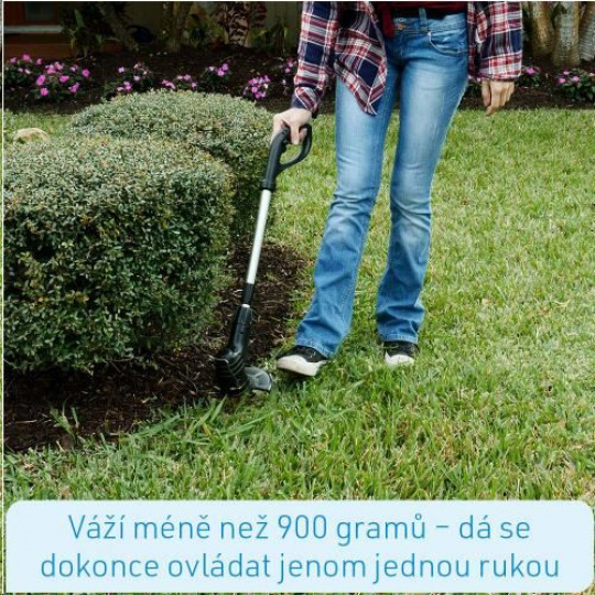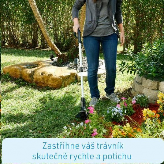 Inovativní technika úpravy trávníku: funguje s běžnými páskami na vázání kabelů Ultra lehký, bez kabelu, dobíjetelný: pro flexibilní použití v zahradě Váží méně než 900 gramů - můžete jej zvednout i jednou rukou Podrobný popis produktu Hammersmith Bionic Trimmer upraví váš trávník zpět do formy. Inovativní zastřihávač funguje pomocí běžných pásek na vázání kabelů a postará se o plynulou práci kterou nebudete muset přerušit, abyste pracně novou strunu do strunové kosačky. Zároveň ušetříte spoustu peněz! Ultra lehký pro flexibilní použití v zahradě Bionic Trimmer je ultra lehký, dobíjetelný, používáte jej bez kabelu, tedy je jeho použití v zahradě absolutně flexibilní. Na jeho obsluhu stačí jedna ruka, je lehký jako pírko, váží méně než 900 gramů. Ergonomická rukojeť a vysouvatelná teleskopická tyč Ergonomická rukojeť se příjemně drží a usnadní vám nakládání s přístrojem. Vysouvací teleskopická tyč vám umožní přístroj přizpůsobit vaší výšce. Díky zabudovanému vodítku se z přístroje stane praktický zastřihovač rohů trávníku. Odteď můžete ve vaší zahradě zastřihovat rohy trávníku bez toho, abyste museli vytahovat další přístroje. Bezpečný, bezkabelový s dobíjecí vysoce výkonnou baterií Hammersmith Bionic Trimmer je vybaven výkonnou lithium - iontovou baterií, takže jej nemusíte únavně doplňovat benzínem nebo olejem. Stačí jej zasunout do zástrčky a dobít. Díky zabudovanému vodítku se z přístroje stane praktický zastřihovač rohů trávníku. Odteď můžete ve vaší zahradě zastřihovat rohy trávníku bez toho, abyste museli vytahovat další přístroje. Ochranný kryt umožňuje rychlé a bezpečné použití. Váš trávník upravíte rychle a potichu. Přístroj můžete používat vertikálně i horizontálně. Detaily produktu: Rozměry: 985 mm x 173 mm x 180 mm Pásky na vázání kabelů: 97,38 mm x 4,81 mm x 1,6 mm Napětí akumulátoru: 7,4 V Kapacita akumulátoru: 2000 mAh, typ: Lithium-iontový Rychlost: 10.000 otáček / min Hluk: 95 dB Nabíjecí adaptér - vstup: 9,5 V, 600 mA Doba úplného nabití: 4 hodiny Doba chodu: max 21 minut Délka kabelu pro nabíjení: 1,8 m Teleskopická rukojeť nastavitelná mezi 70 - 95 cm Váha: 0,9 kg Obsah balení Obsah balení: 1 x Hammersmith Bionic Trimmer přístroj 24 x páska na vázání kabelů.