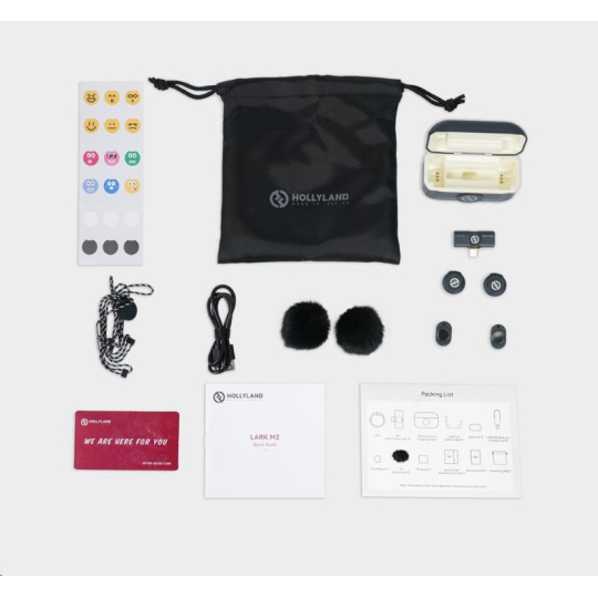 LARK M2 sa dodáva so sadou užitočného príslušenstva, vrátane veterných krytiek na nahrávanie vonku, káblových konektorov pre jednoduché pripojenie a špeciálneho náhrdelníka pre každý TX. S týmto príslušenstvom budete mať všetko, čo potrebujete na nastavenie zariadenia LARK M2 a využívanie jeho funkcií.