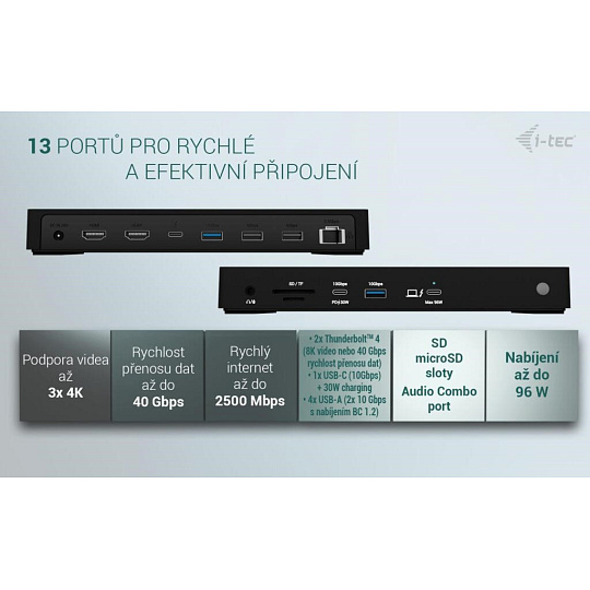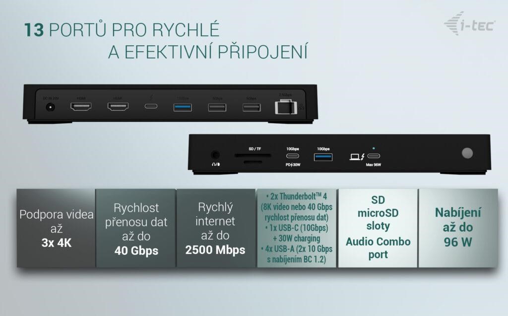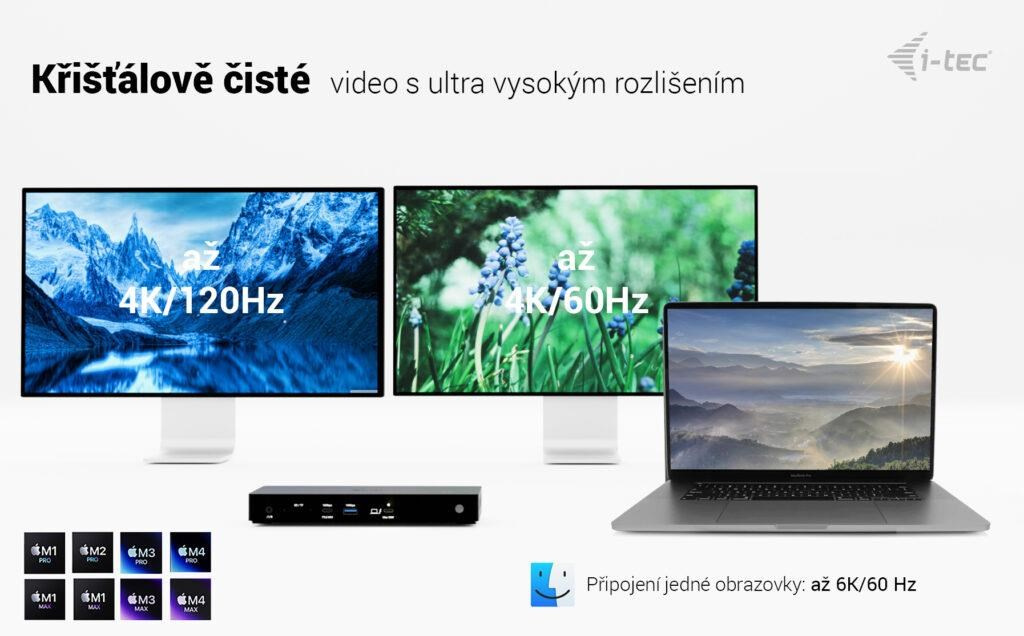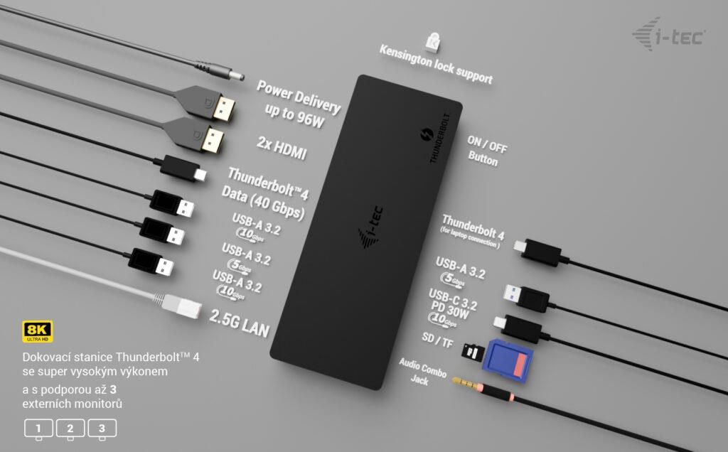 Ultra vysoký výkon, ultrarýchly prenos dát a podpora rozlíšenia až 8K/60 Hz. Jedna z najvýkonnejších dokovacích staníc i-tec na trhu!