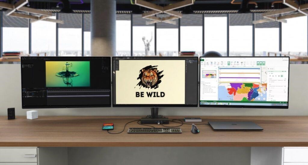 - Dockovacia stanica s veľmi vysokým výkonom a podporou pripojenia až troch externých monitorov (platí pre systémy Windows)