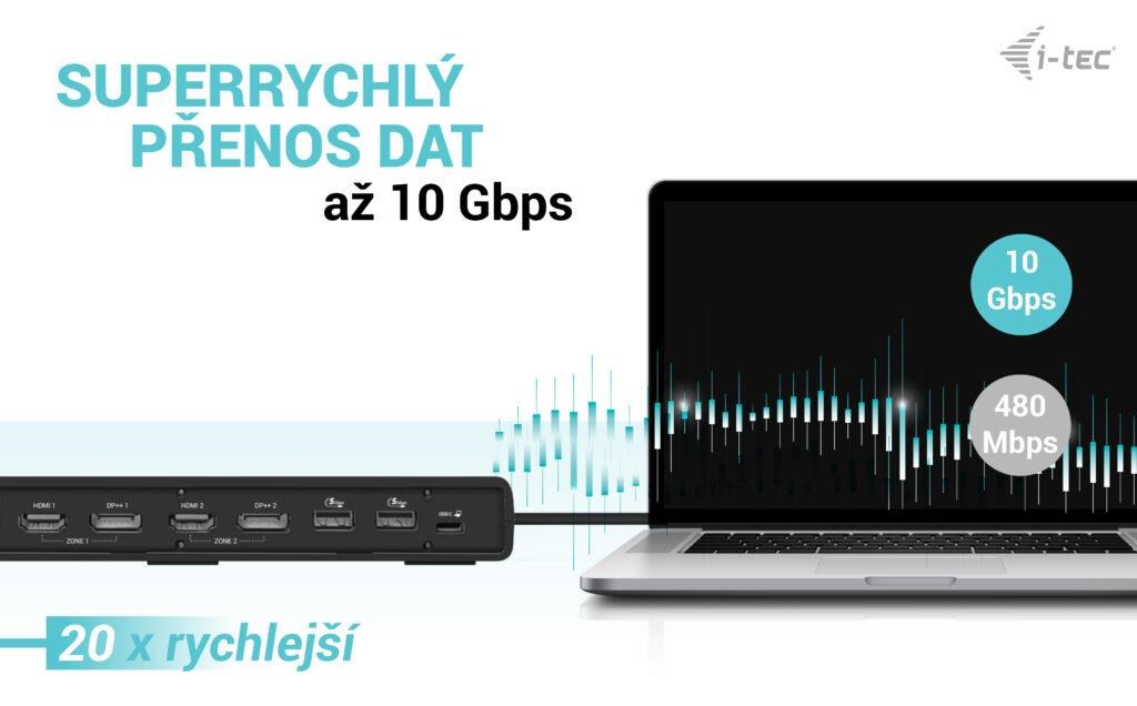 BAZAR - i-tec USB 3.0 / USB-C / Thunderbolt Dual Display Docking Station + PD 100W - Po opravě (Náhradní krabice)