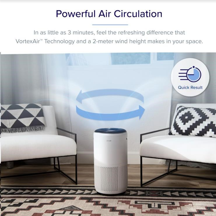Patentovaná technológia VortexAirTM zaisťuje maximálnu cirkuláciu vzduchu v priestore a udržuje tak vzduch čistý a svieži. Vysoký výkon až 400 m3/h CAD hravo vyčistí vzduch v miestnostiach s priestorom až 81m2.