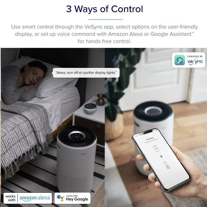 Chcete mať doma čistý vzduch ako prevenciu pred ochorením horných dýchacích ciest alebo ste alergik či astmatik? Chytrá čistička Levoit CORE Core 400S Smart vďaka vysoko kvalitnej 3 vrstvovej filtrácii s filtrom HEPA H13 a maximálnu cirkuláciu vzduchu patentovanej technológie VortexairTM odstráni až 99,99% škodlivých látok a nečistôt, ktoré by ste inak dýchali. Ovládanie čističky vzduchu je skutočne jednoduché. Môžete ju ovládať priamo na displeji alebo sa ponúka ovládanie cez aplikáciu na chytrých zariadeniach Android alebo Apple (iOS). Čistička môže byť tiež ovládaná hlasom cez Alexu. V noci oceníte nočný režim podporený technológiou QuietKEAPTM, vďaka ktorej prevádzka produkuje hluk iba 24dB a váš spánok tak nebude rušený.
