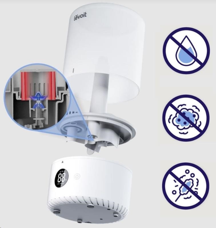 Konštrukčne bol použitý hydraulický ventilátor a prevádzka je vďaka nemu veľmi tichá a nebude vás rušiť ani pri spaní. Budete môcť nerušene snívať a zvlhčovač Levoit Duall200S Smart sa postará o kvalitu a vlhkosť vzduchu v miestnosti podľa vašich predstáv.