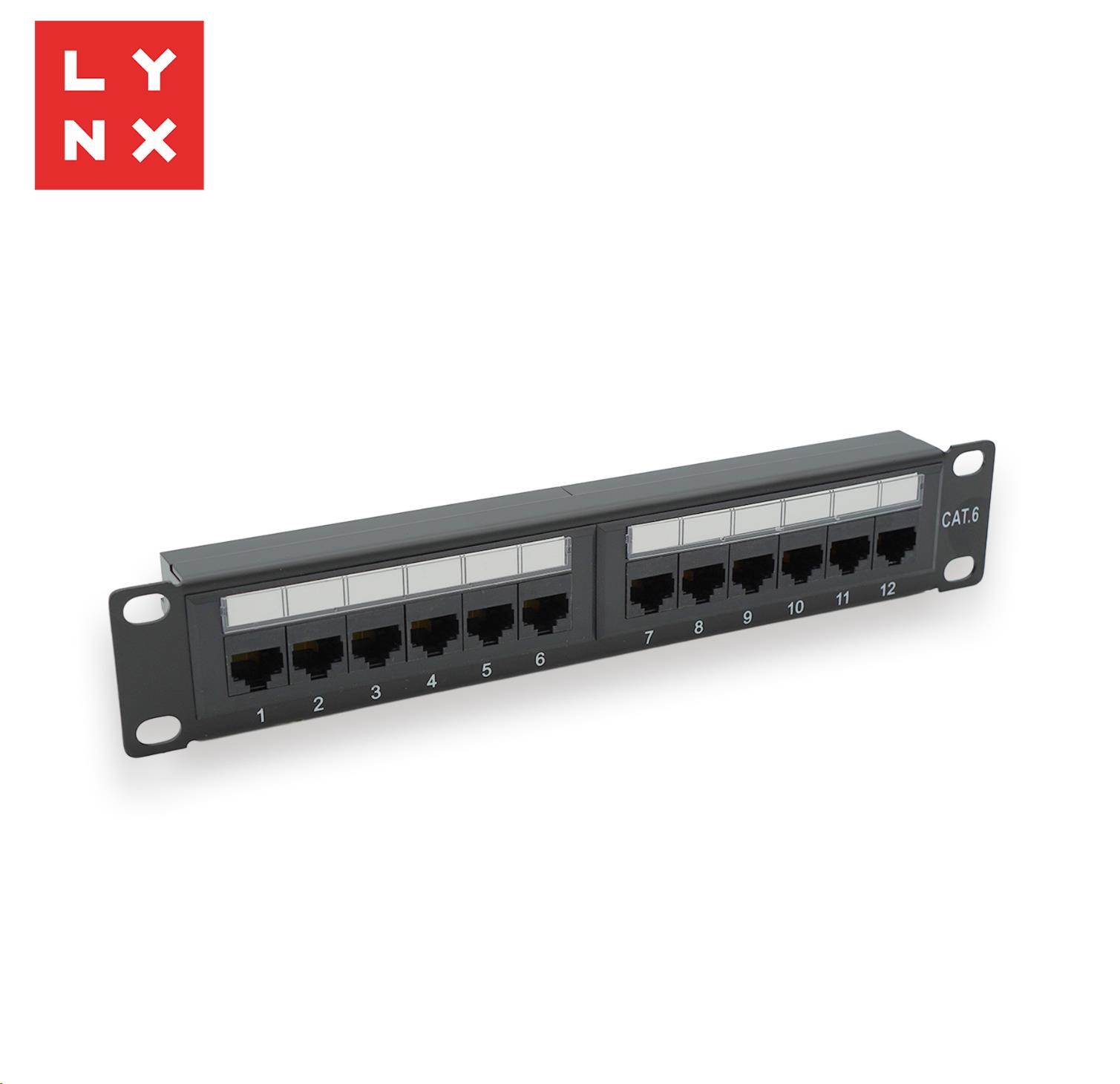 LYNX 10" patch panel 12-port, UTP Cat6, 50µ, nestíněný, černý