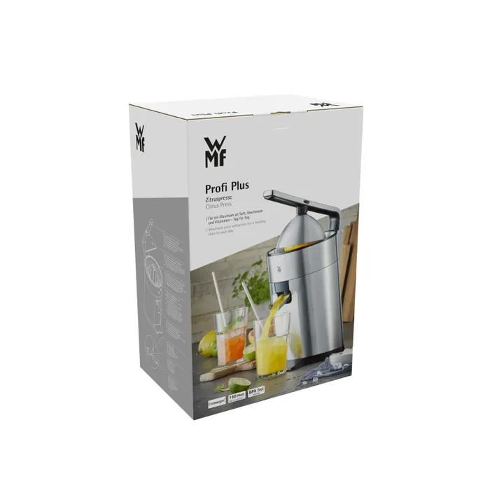Odšťavňovač WMF Profi Plus, navrhnutý pre maximálnu extrakciu šťavy, vám zabezpečí zdravý štart do dňa – to všetko v jednoduchom a nenáročnom prevedení. Jeho univerzálny kužeľ s automatickým otáčaním pri stlačení je vhodný pre všetky druhy citrusových plodov a pre lahodnú čerstvú šťavu plnú vitamínov a živín. Výkonný 160W motor odšťavovača skutočne vytiahne aj posledný kúsok, zatiaľ čo ergonomická páka zaručuje jednoduchú obsluhu. Odšťavňovač Profi Plus, vyrobený z úžasnej a zároveň odolnej nerezovej ocele a s nekapajúcou výlevkou, je štýlovým a moderným doplnkom každej kuchyne.