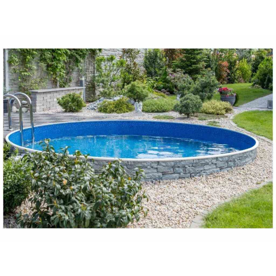 Bazénová fólia Waves pre bazény s plechovou stenou o priemere 5,5 m a hĺbke až 1,2 m. Fólia je vhodná na nové bazény, ako aj na výmenu do už postavených bazénov.