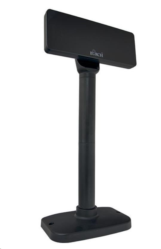 Birch DSP-V9 je vlastný alfanumerický VFD displej pre pokladnice, pošty a iné pulty za bezkonkurenčnú cenu. Zobrazuje 40 znakov v dvoch riadkoch veľkým, vysoko svietivým písmom. Ovládanie prebieha cez rozhranie USB alebo RS232 pomocou štandardného príkazového jazyka podľa vášho výberu (LD220, DSP800, UTC/S, ESC/POS, AEDEX, CD5220 a iné). Jeho hlavu možno horizontálne otáčať až do uhla 355°.