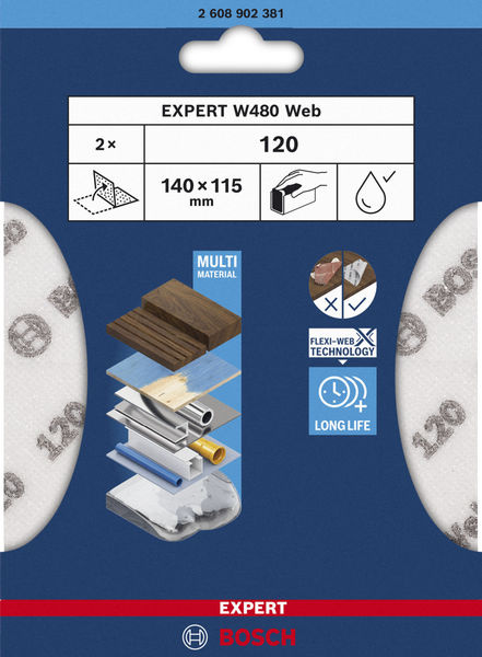 Bosch EXPERT W480 Web 1/4 ruční brusná síť, 115 × 140 mm, G120