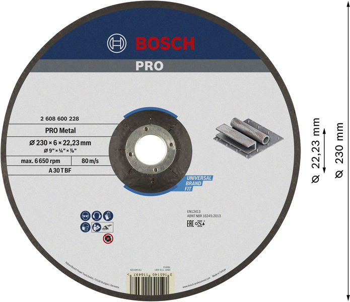 .Bosch hrubovací kotouč PRO Metal, 230 × 6 × 22,23 mm, oSa