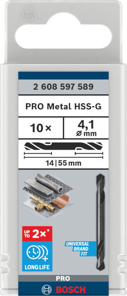 Bosch oboustranný vrták do kovu PRO Metal HSS-G, 4,1 × 14 × 55 mm, 10 ks
