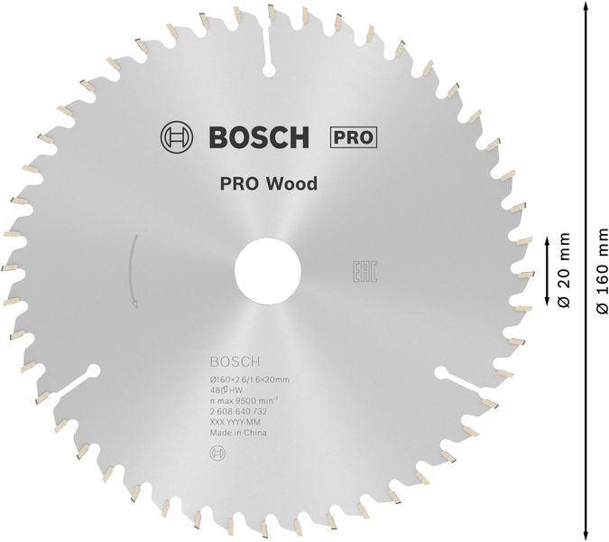 .Bosch pilový kotouč PRO Wood pro okružní pilu, 160 × 2,6 × 20 mm, T48